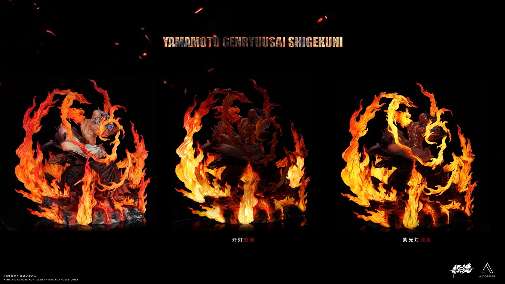 *A款配置:人物主體+場景地台(除紫光燈玩法外,人體上半身疤痕可單獨開燈展示,場景配有7條獨立燈帶及燈珠為統一控制)