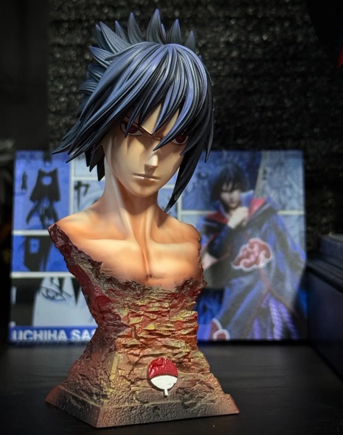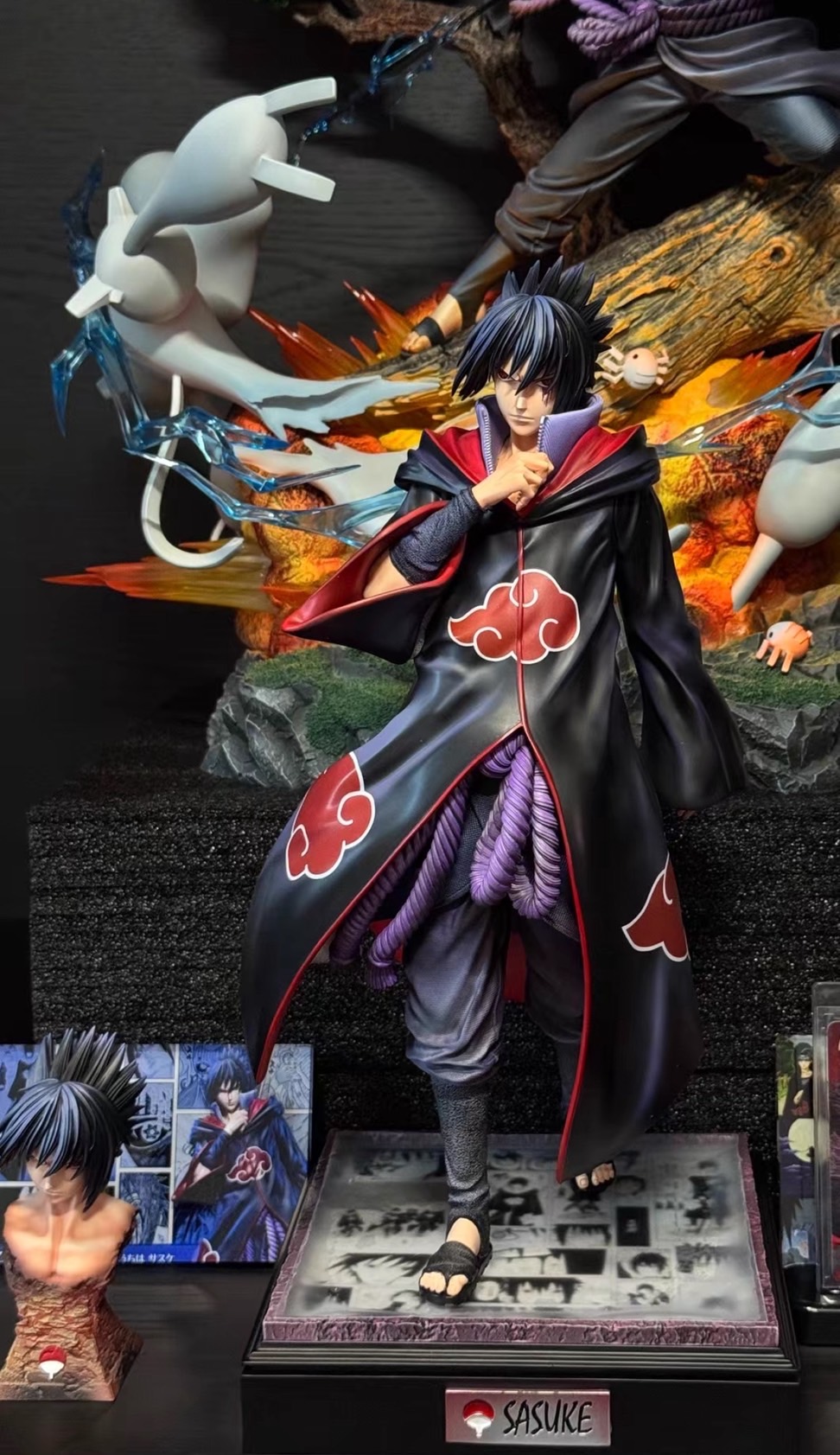 團隊:涅槃 工作室 作品:佐助的一生系列第三款 鷹小隊佐助 配置:人物主體+地台+配件包 尺寸: 高36 寬18 深17 cm(含底座) 材質:進口PU / 進口寶麗石
